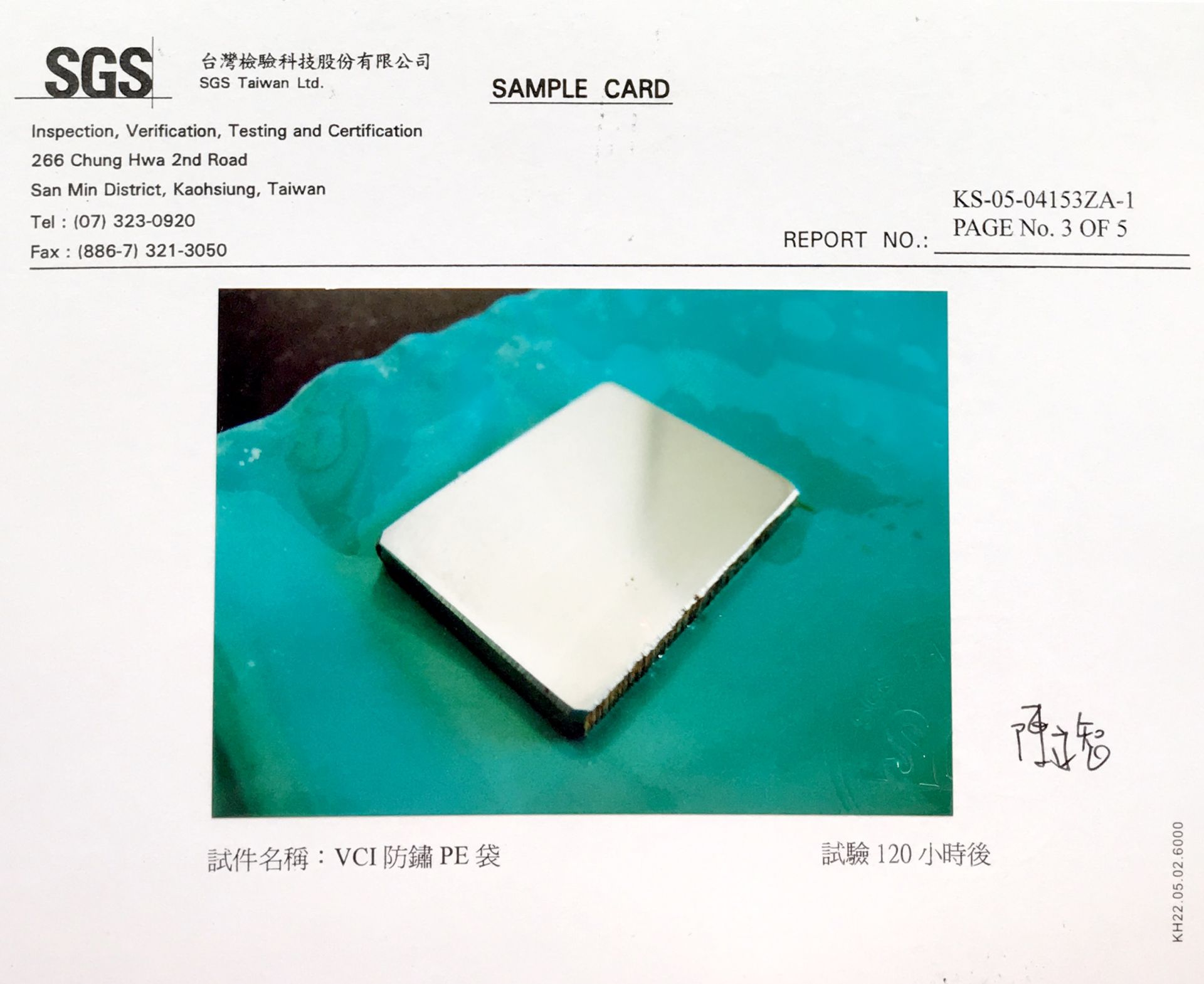 - 採用高品質低密度聚乙烯(LDPE)加入防鏽劑製成,產品尺寸客製化,另外也提供多種顏色作為產品區分管理的選擇。